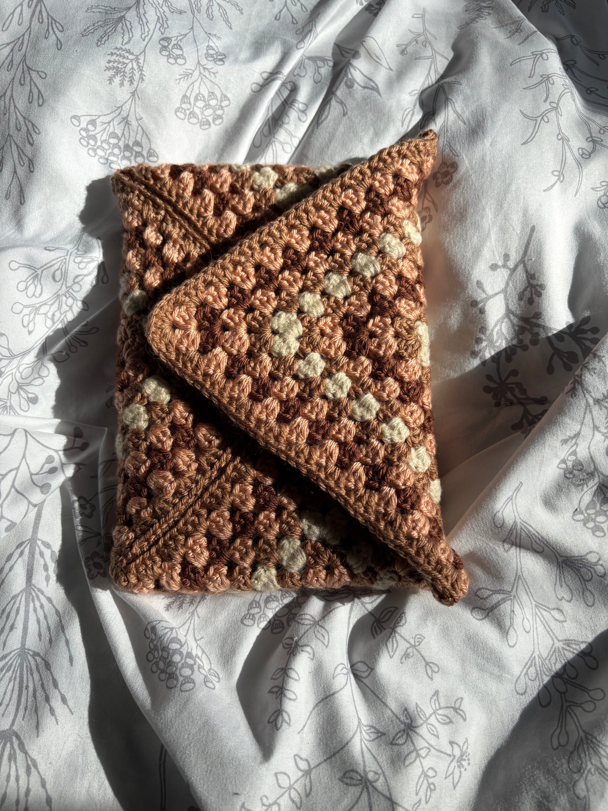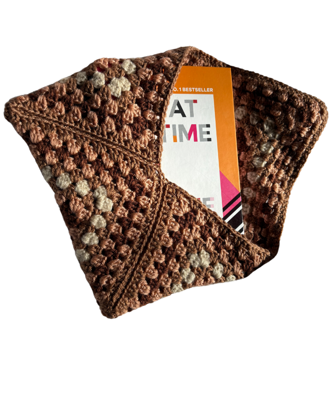 Wrap your favorite book in warmth and style with this handmade crochet book sleeve! Thoughtfully crafted using soft, durable yarn, this sleeve features an elegant blend of earthy tones, creating a cozy, vintage-inspired aesthetic. The intricate granny stitch pattern adds texture and charm, while the envelope-style closure keeps your book secure, making it perfect for book lovers on the go.