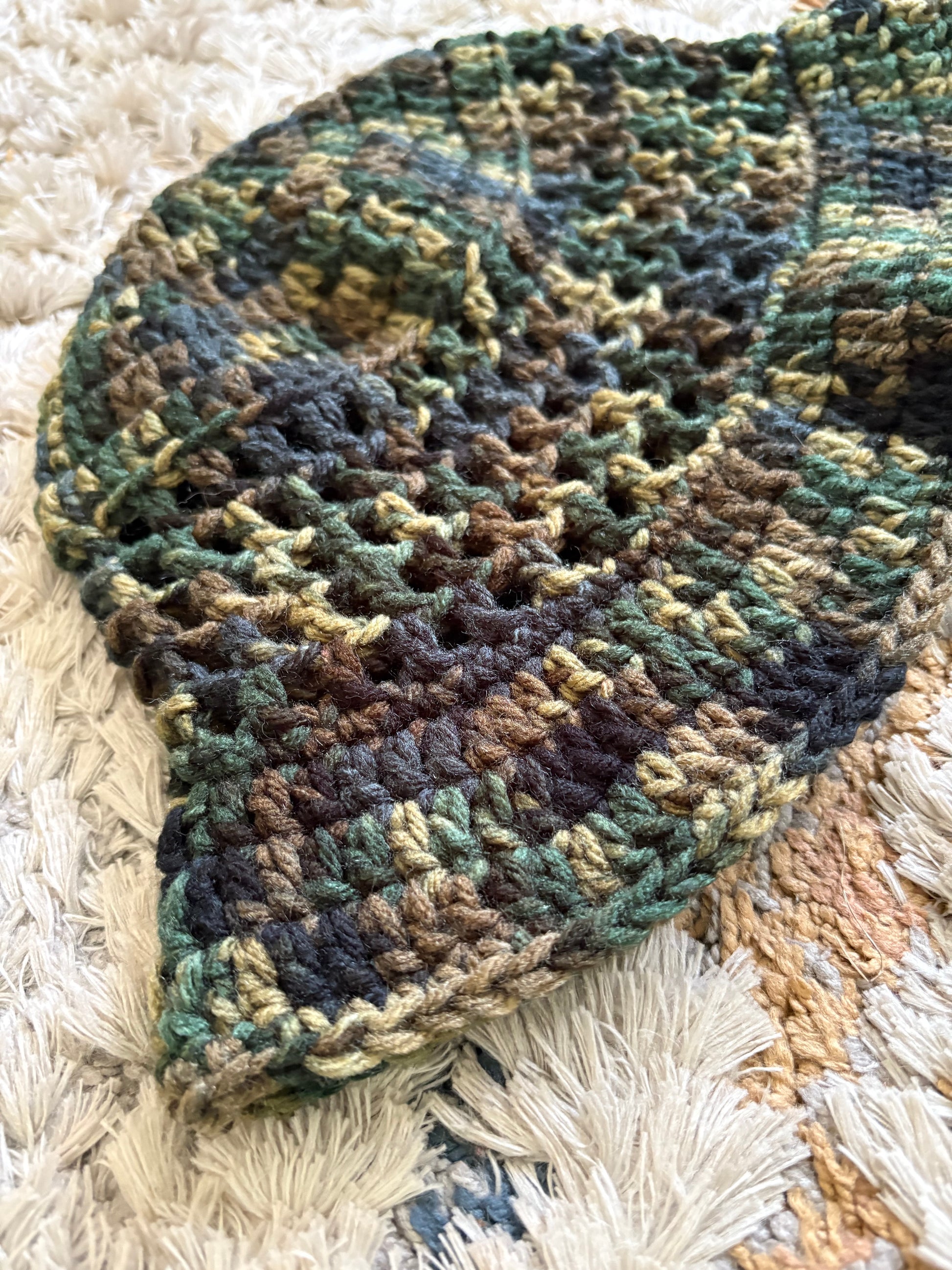 Inspired by forest trails, cozy cabins, and wild wanderings, this handmade crochet bucket hat is the ultimate go-to for neutral lovers and nature souls. The openwork stitch keeps it breezy while the camouflage-inspired yarn blends beautifully into any laid-back wardrobe.
